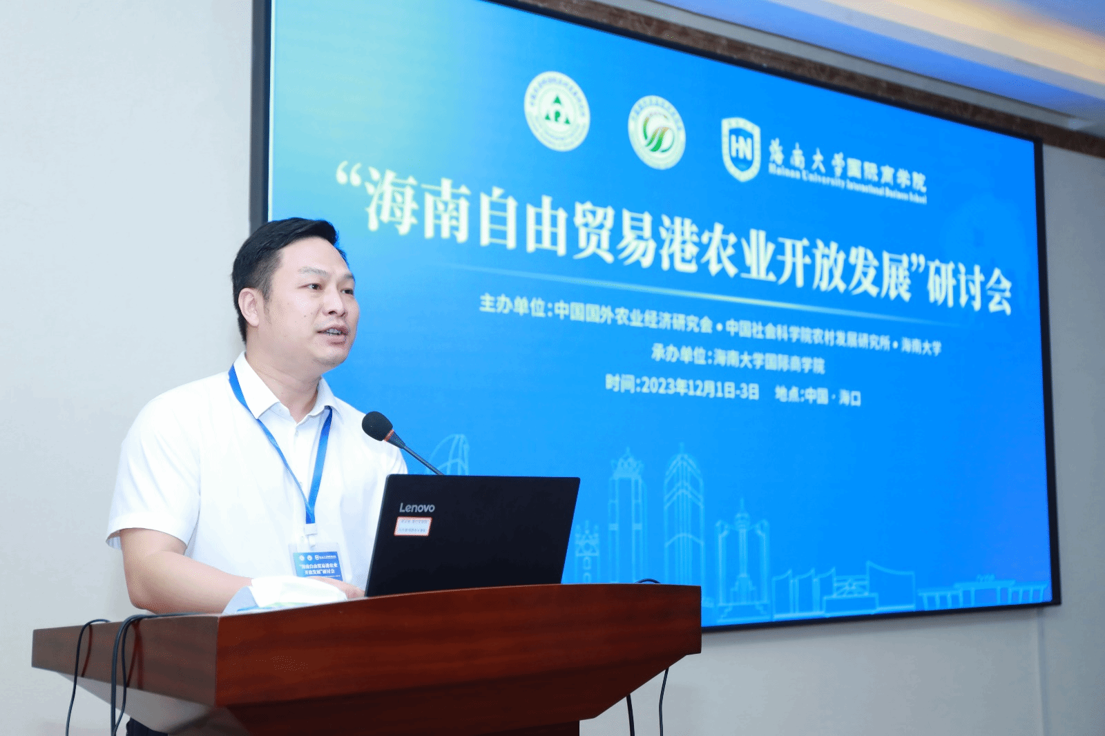 中国社会科公司农村发展研究所党委书记杜志雄致辞,他指出传统农业到综合性农业要运用好国际供应链,以国家战略为导向,推进中国农业农村开放发展。海南要立足区域优势,加强对国外农业经济的研究,争当农经学科对外交流的第一线。