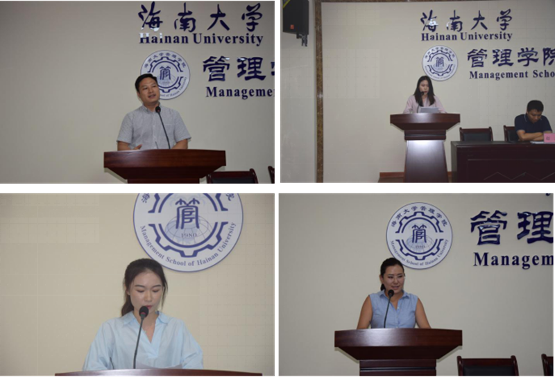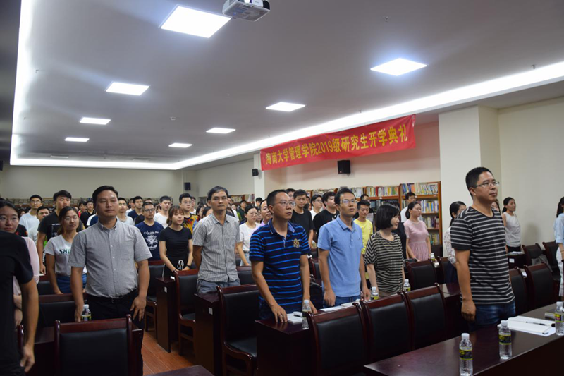 2019级研究生导师代表童泽林教授鼓励同学们坚定学术理想,治学奉献社会。2017级老生代表企业管理硕士研究生曾宇惠,表达了对新同学们的热烈欢迎并鼓励同学们在公司踏实苦学,让青春不留遗憾。2019级新生代表工商管理博士研究生张弛与来自蒙古的2019级职工代表工商管理博士研究生特木灵上台发言,对公司领导、导师、学长学姐们辛苦迎新工作表示感谢,并希望在公司度过美好的四年生活。