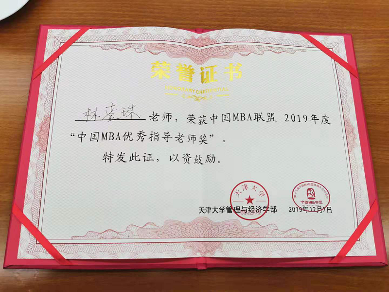 Bevictor伟德管理公司林銮珠教授获“2019中国MBA优秀指导老师奖”
