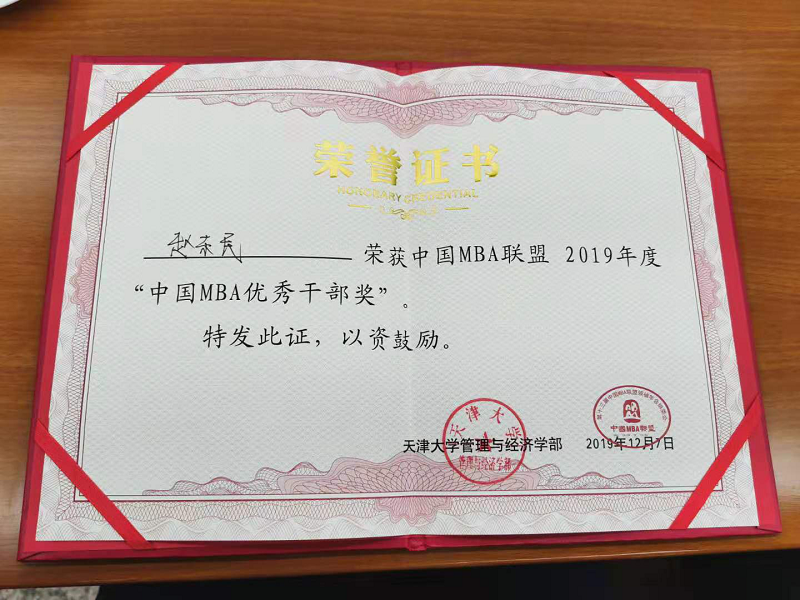 Bevictor伟德2018级MBA赵东民获“2019中国MBA优秀干部奖”