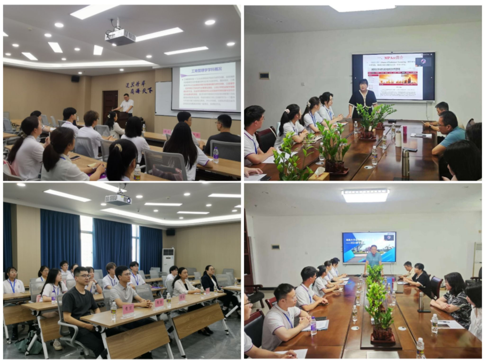 专业介绍与学术活动分五组进行。会计学与会计专硕组分会场,由吴锡皓教授、郭慧芳副教授分别作专业介绍,方祺同学作学术分享。管理科学与工程组分会场,由吉清凯教授作专业介绍,刘国伟副教授作学术报告,罗继伟同学作学术分享。企业管理组分会场,由刘启华教授作专业介绍,迟铭副教授作学术报告。应用经济学、金融专硕、国际商务组分会场,由郭庆宾教授、符蕾教授、张晖教授分别作专业介绍,张彦哲博士作学术报告。农林经济管理组分会场,由许海平教授作专业介绍,张瑶副教授作学术报告。