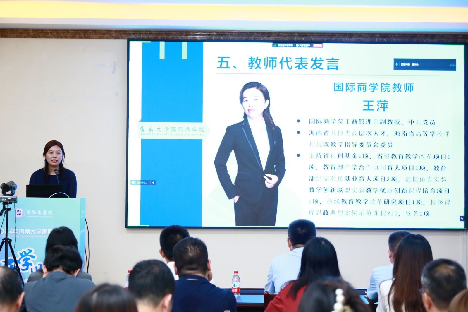 王萍副教授作为教师代表发言,寄语同学们珍惜眼前美好,懂得感恩与奉献,不断提升自己的能力,用所学知识为社会贡献自己的力量。摩羯台风的来袭,不仅考验了大家的应变能力,更激发了大家面对困难不屈不挠的精神。大家的到来,更如同雨后初晴的阳光,为公司带来了新的生机与活力,希望在日后的征途中也能并肩逐梦,共绘国商新篇章。