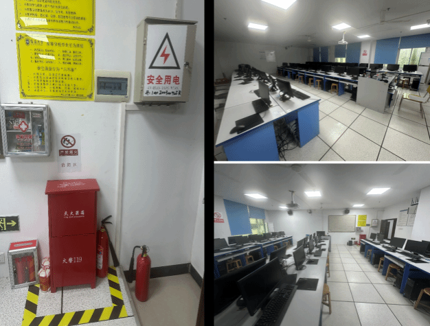 本次检查工作对实验室的电源、水源、门窗管理以及消防设施等进行了全面细致的检查。实验室管理人员检查了实验室内的电线、插头插座、电源接头松动老化,绝缘不可靠,裸露电线以及线路串接和超载用电等安全隐患。同时,还查看了灭火器、消火栓等消防设施设备是否完好有效,数量种类位置配置是否合理。