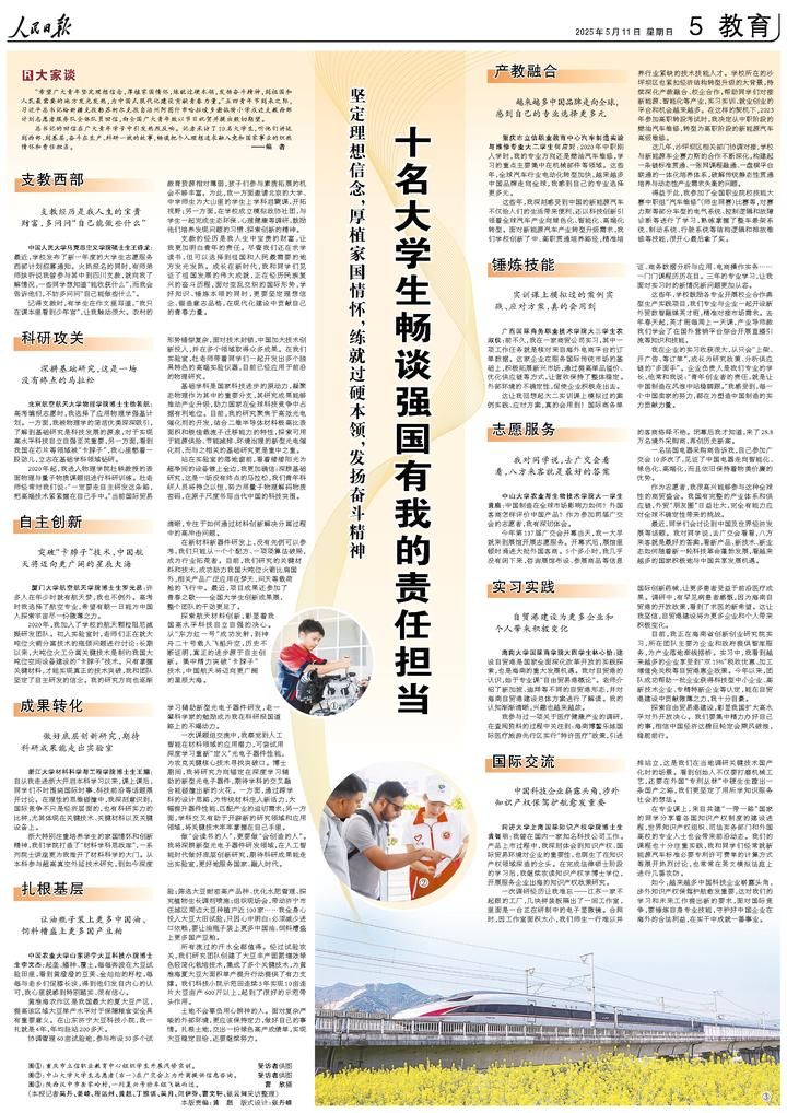 2025年5月11日,人民日报刊发了《强国有我责任担当,十名老员工这样说》的专题报道,伟德体育 2021 级工商管理专业 2 班林心怡同学作为受访十名老员工之一,结合自身经历,阐述了自贸港建设为更多企业和个人带来的积极变化。