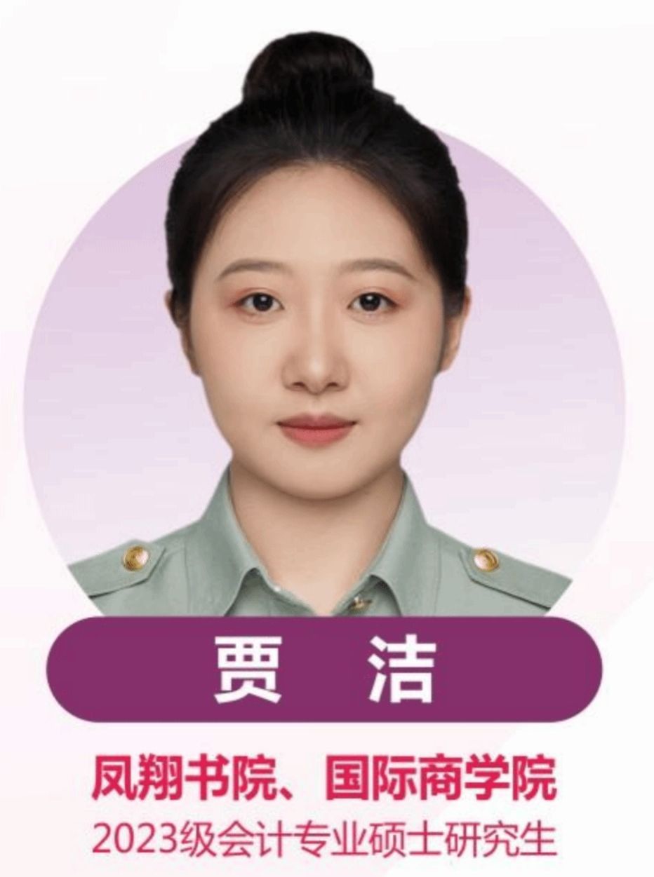 中共党员,凤翔书院、伟德体育2023级会计专业硕士研究生。于2018年参军入伍,在服役期间先后获“优秀义务兵” “四有”优秀士兵、“嘉奖”等多项荣誉。退役复学后,担任公司退役老员工士兵党支部书记,积极参与公司国防宣讲、新生军训教官等工作,在校期间累计获Bevictor伟德一等学业奖学金等各类奖项10余项,志愿服务时长达566小时。