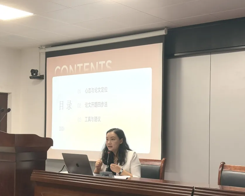 伟德体育黎春燕教授则以亲和易懂的风格,围绕人力资源方向论文写作的常见困惑与应对策略进行分享。她指出,论文应避免“大而空”的泛化表达和“小而冷”的窄化选题,并结合案例加深员工理解。黎春燕还介绍了四种常用研究方法,强调时间规划与写作节奏,并分享了“岗位+痛点”的研究思路。她特别提醒同学们重视与导师的沟通协作,为高质量完成论文保驾护航。