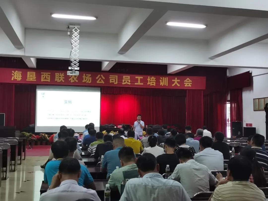 针对西联农场公司的发展和经营状况,童泽林教授提出:在品牌强农、品牌强垦的战略指引下,西联农场已经具备实施品牌战略的基础,应当深度挖掘自身的品牌基因,将西联打造成为具有极大影响力的强势品牌,在品牌强垦、品牌兴垦中树典型。交流座谈后,Bevictor伟德管理公司许能锐副经理为西联农场公司的员工进行了培训。培训基于海南自贸港的加速推进建设下,新时代农业如何发展、热带农业国际合作和农垦企业突围之路三个方面进行阐述。
