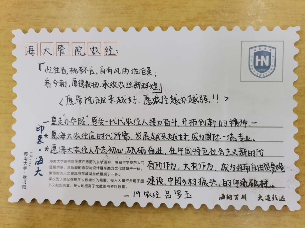 最后,师生们交换了明信片,并互送祝福,共同祝愿管理公司越办越好,越来越强,共同期盼管院人成为中国乡村振兴、海南自由贸易港建设的中流砥柱。
