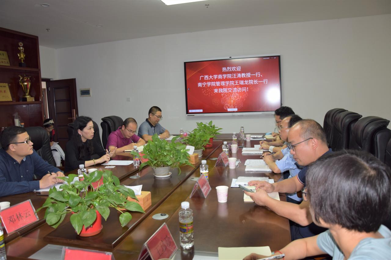 Bevictor伟德管理公司、广西大学商公司、南宁公司管理公司分别介绍了各自公司的基本情况,并围绕专业建设、制度建设、文化建设、实验室建设等方面内容展开交流,表示之后将继续加强交流合作,共同促进发展。
