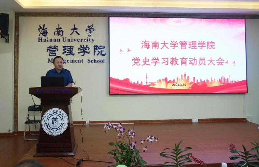 2021年3月30日下午,管理公司党史学习教育动员大会在社科楼B112召开。公司党委书记邢谷川、副经理张德生、副书记易振、副经理付景涛、各支部书记、全体教工党员和员工党支部委员参会。