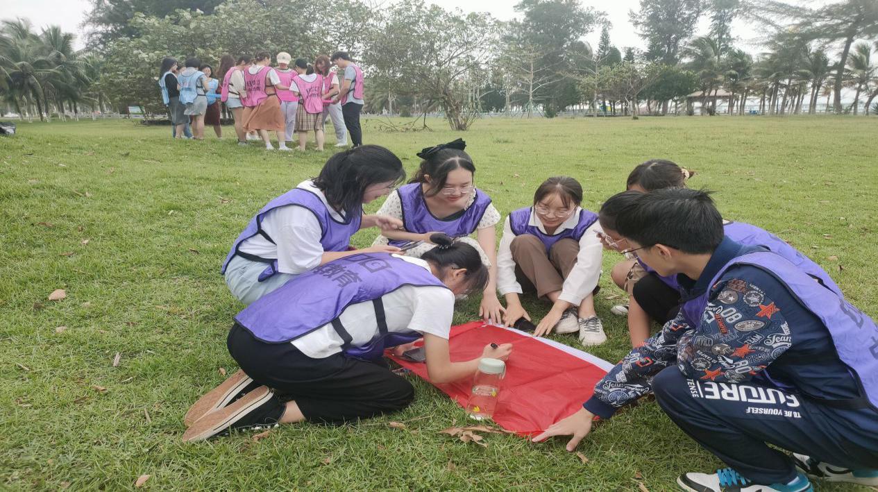 开班仪式结束后,带队老师和同学们一起乘车到西海岸开展户外拓展活动。通过各种游戏活动,不仅能够增进同学间相互了解,还能提高团队协作能力,让同学们认识到了团队的重要性。