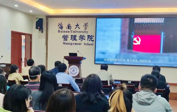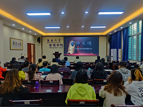 2021年11月24日下午,管理公司党委于社科楼B112开展警示教育活动,组织观看警示教育片《警钟长鸣——严肃换届纪律教育警示》。公司领导班子成员,各党支部书记、支部委员,各系、各办(中心)主任参加。