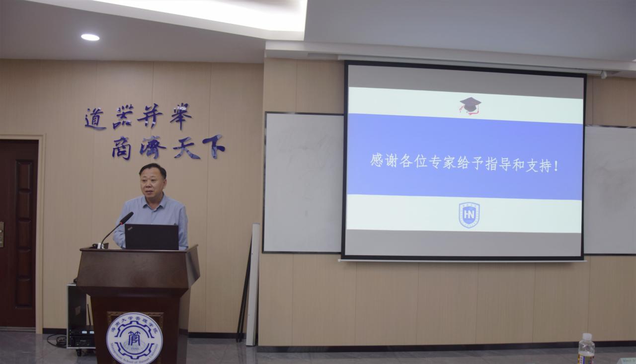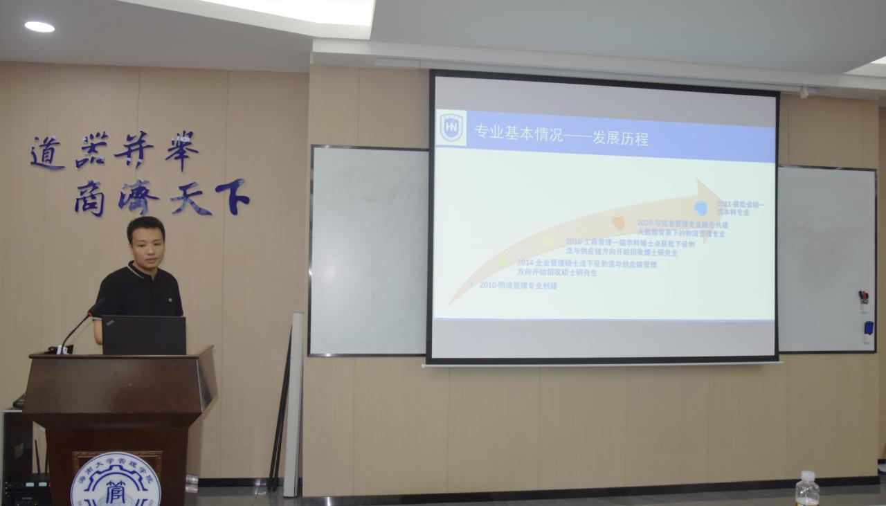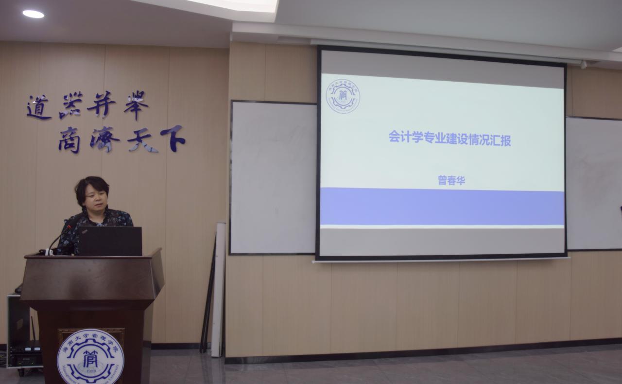 工商管理专业责任教授唐宁玉、会计专业责任教授曾春华、农林经济管理专业责任教授韦开蕾、物流管理专业责任教授赵达分别汇报了工商管理、会计、农林经济管理、物流管理等四个专业的建设情况。
