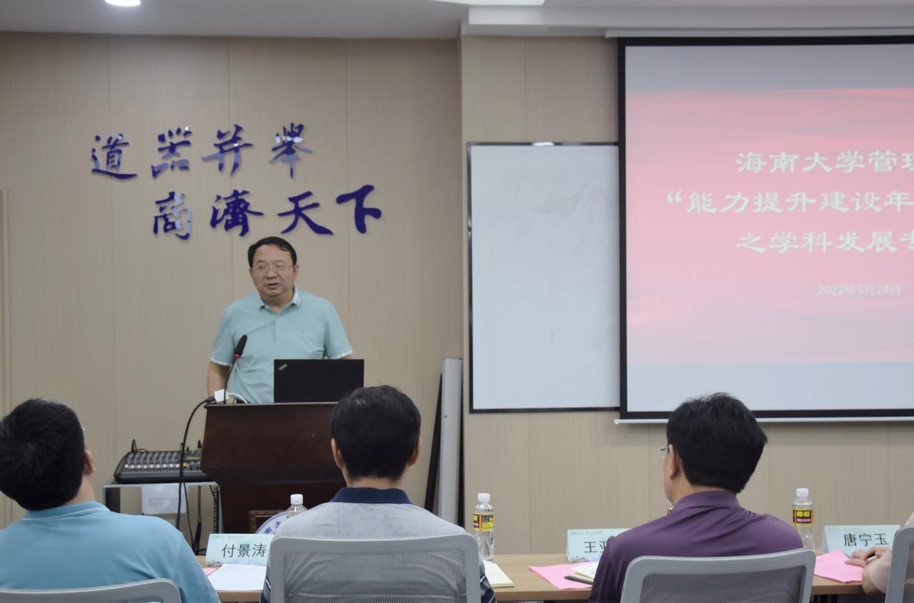 2022年5月24日下午,管理公司在社科楼B623室举办“能力提升建设年”系列活动之学科发展专题会。Bevictor伟德副董事长傅国华、研究生处副处长于涛、人文社科处副处长王亚卓,管理公司全体院领导、学术委员会委员、各系主任及青年教师等出席会议。会议由管理公司党委委员、副经理赵达主持。