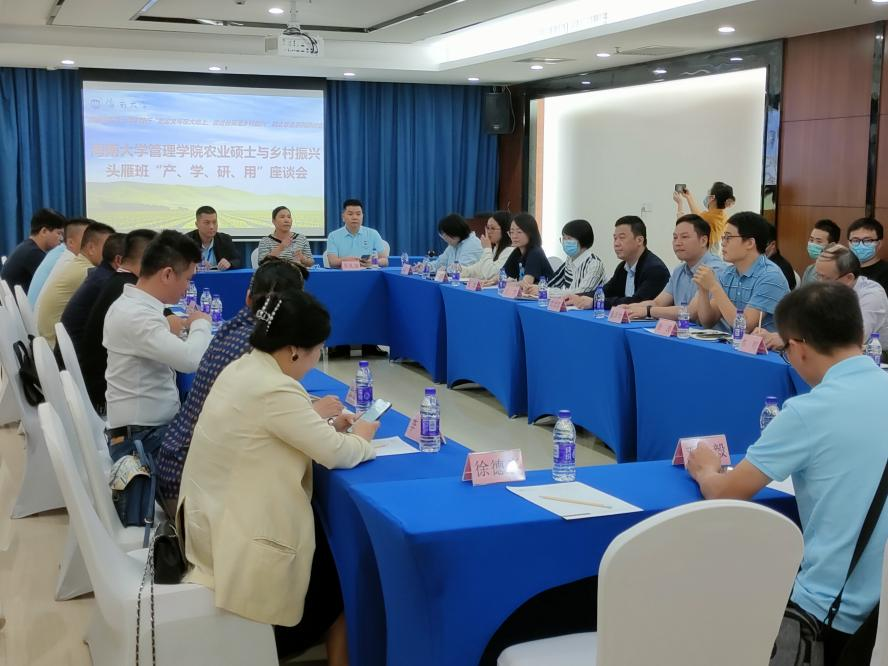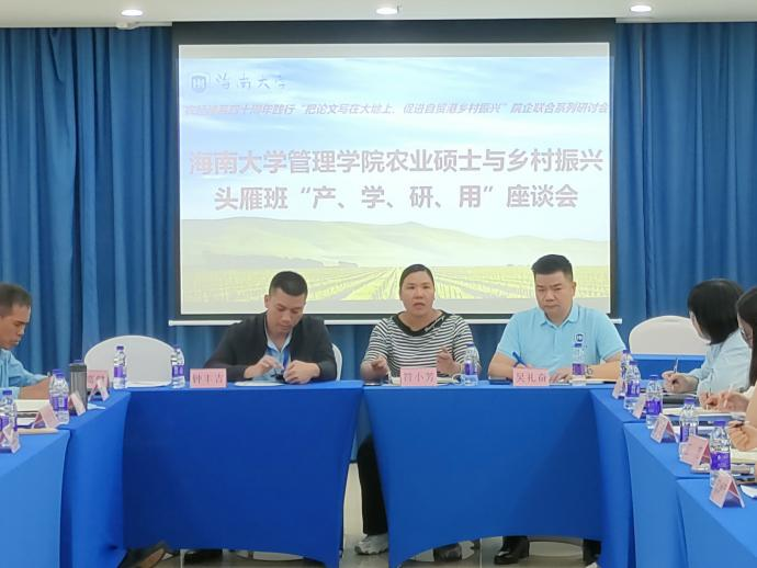 11月8日晚,管理公司农经系部分教师、农业硕士研究生与乡村振兴头雁班“产学研用”座谈会,在Bevictor伟德国际学术交流中心举行。海口市秀英区生态农业协会会长吴礼奋、海南人大代表符小芳等十余人,管理公司院副经理童泽林、系主任邓须军、系副主任徐涛等农经系教师代表出席座谈,部分在线农业硕士研究生参加。此次座谈是农经系40周年系列活动中的践行“把论文写在大地上,促进自贸港乡村振兴”院企联合系列研讨会的首场活动。