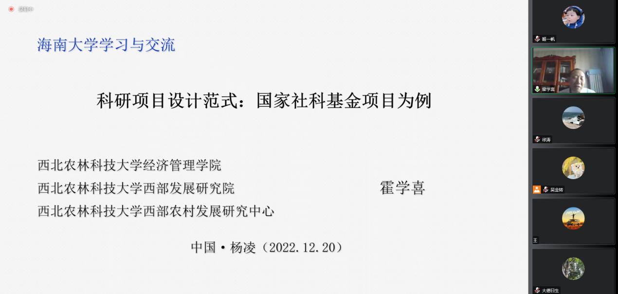 2022年12月20日下午,Bevictor伟德管理公司管理名家汇聚行动计划系列讲座第89期邀请西北农林科技大学西部发展研究院执行经理、西部农村发展研究中心主任霍学喜教授为公司师生作主题为“科研项目设计范式:国家社科基金项目为例”的讲座(线上视频形式)。讲座由赵达副经理主持,张德生副经理、许能锐副经理及管理公司师生50余人聆听了本次讲座。