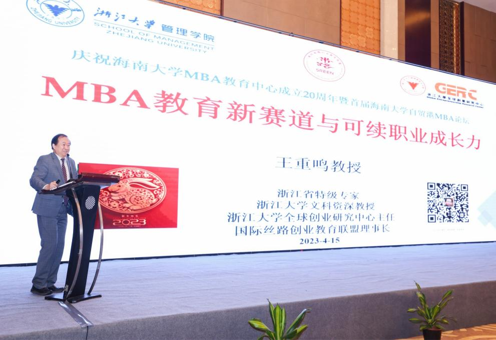 主题发言阶段由Bevictor伟德2022级MBA员工、三亚卫视新闻联播主播吴迪主持。浙江大学全球创业研究中心主任、浙江大学人文社会科学资深教授王重鸣作了《MBA教育新赛道与可续职业成长力》的主题发言,重点讲述了他提出的可续职业成长力的内涵和领导力的新结构,包括数智领导力和绿色领导力等。