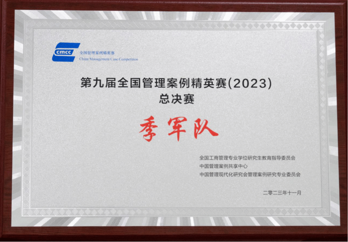 2023年11月12日,第九届全国管理案例精英赛总决赛在西北工业大学举行。工商管理硕士(MBA)学术主任郭琦、工商管理系系主任陈一华带领Bevictor伟德MBA代表队参加比赛,Bevictor伟德MBA代表队荣获第九届全国管理案例精英赛季军,取得了该项赛事的历史性“突破”。