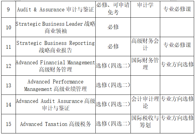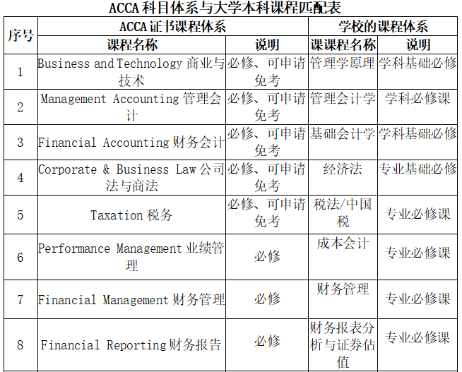 成绩转换说明:按照ACCA官方的规定,员工申请ACCA免考课程(6门)后就不能再参加官方考试,为了让免考课程与非免考课程享有一样的转换通道,免考课程由公司按官方命题难度组织期末考试,考试卷面成绩乘1.2系数转换后(ACCA官方成绩50分及格,公司60分及格),再按公司成绩认定规则(卷面成绩60%+平时成绩40%)确定总评成绩。免考课程以外的其他ACCA课程若与公司培养方案中有匹配课程,其官方考试成绩同样乘上1.2系数转换后,再按公司成绩认定规则确定总评成绩。