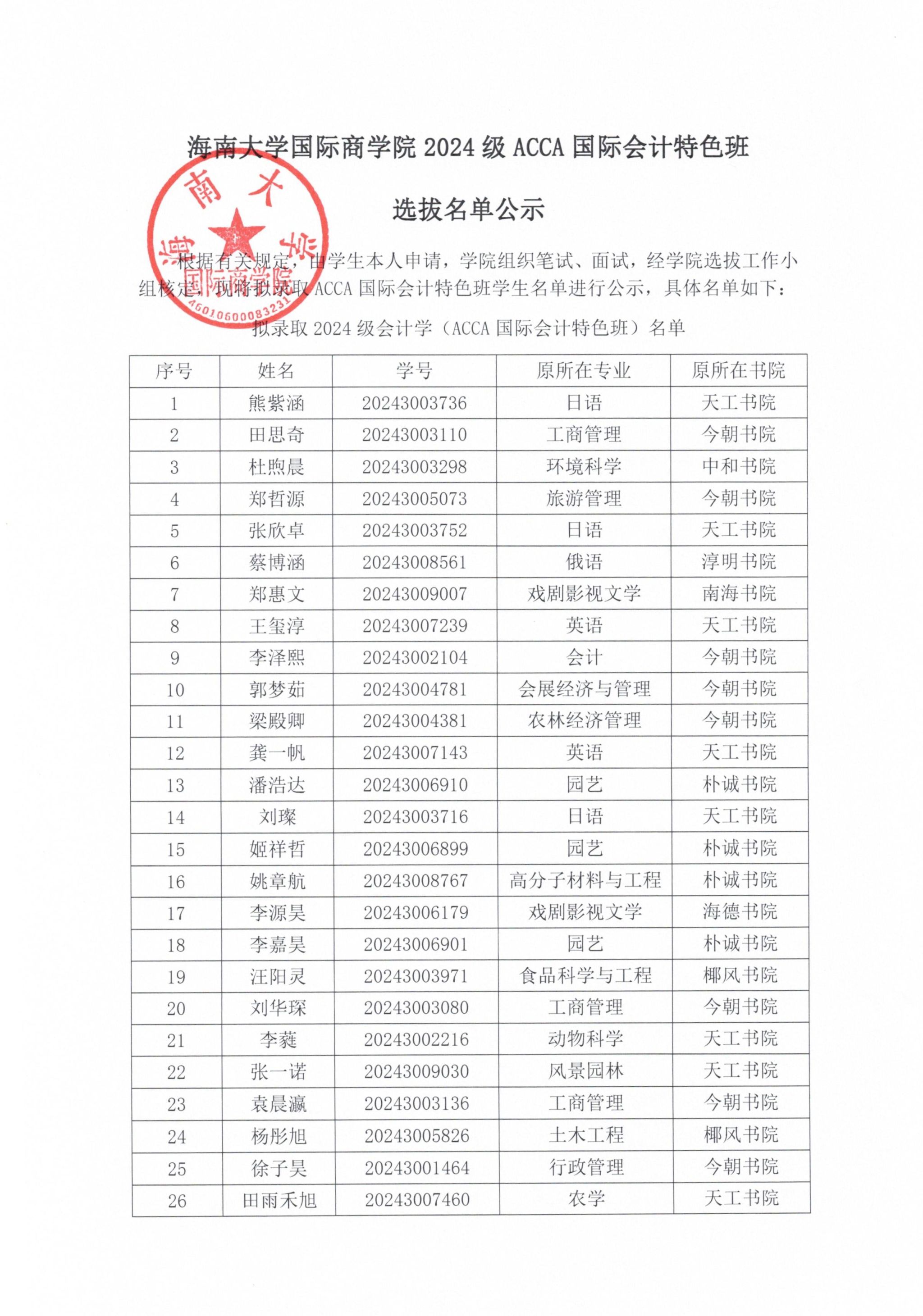 伟德体育2024级ACCA国际会计特色班选拔名单公示