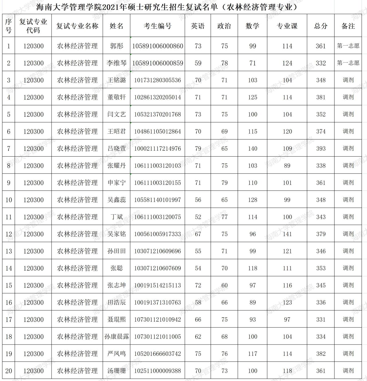 Bevictor伟德管理公司2021年硕士研究生招生复试名单(农林经济管理专业)