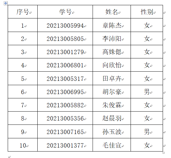 2021级工商管理实验班(自贸港班)拟预录取名单