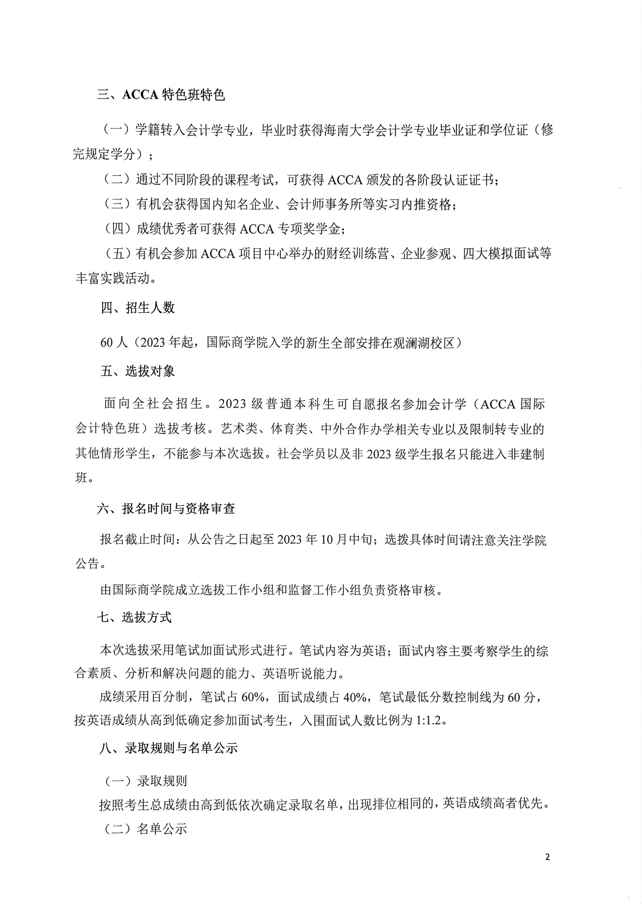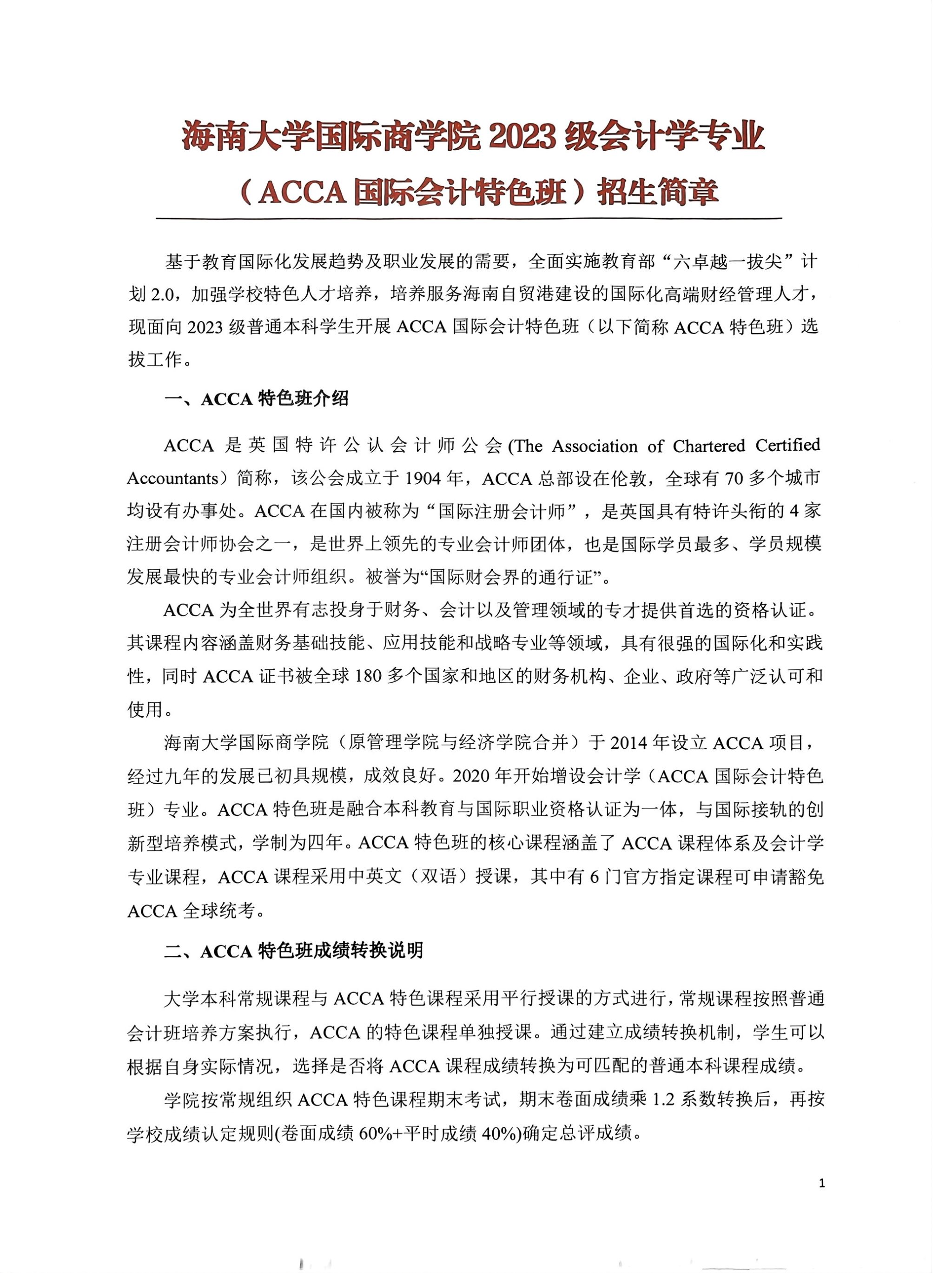 伟德体育2023级会计学专业(ACCA国际会计特色班)招生简章