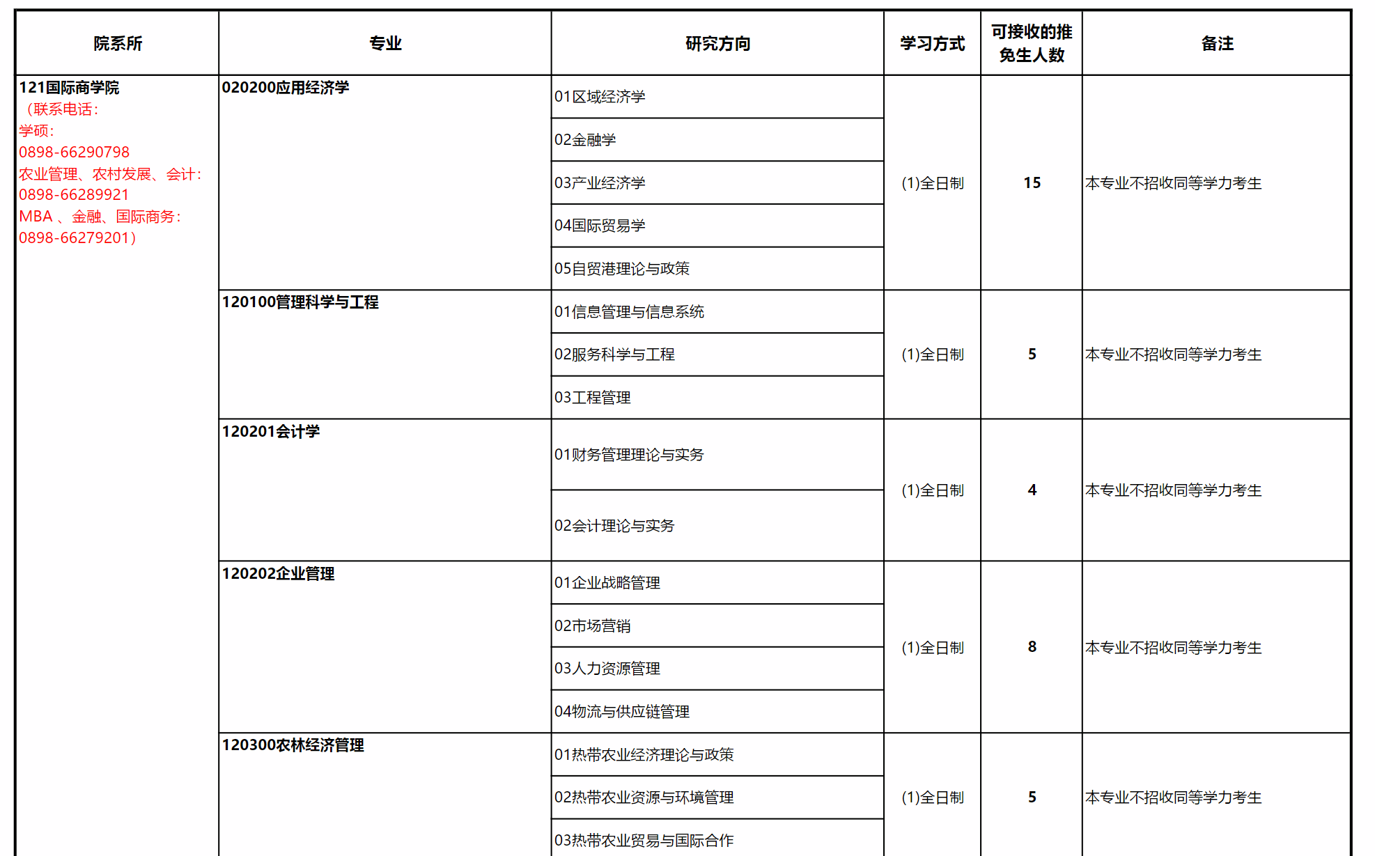 2.学术型硕士研究生联系电话:0898-66290798 联系人:易老师