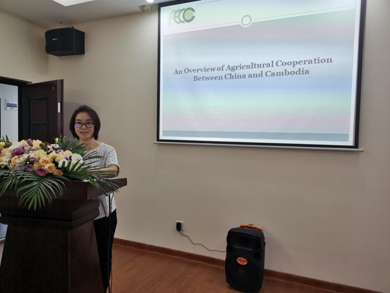 张斌副研究员就中国概况、中国农业概况、中柬农业合作概况三个部分进行主题汇报。目前中柬合作领域有农产品种植、农业机械化、跨境动物疫病防治、接种疫苗、国境动物流动管理与检疫、动物疫病防治区建设、捐赠动物检验检疫设备等领域。