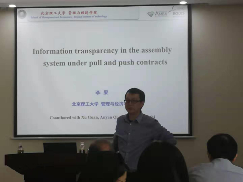 2019年11月2日上午,北京理工大学李果教授应邀为Bevictor伟德管理公司师生作题为“装备系统中两种合同类型的信息透明度”的学术报告。