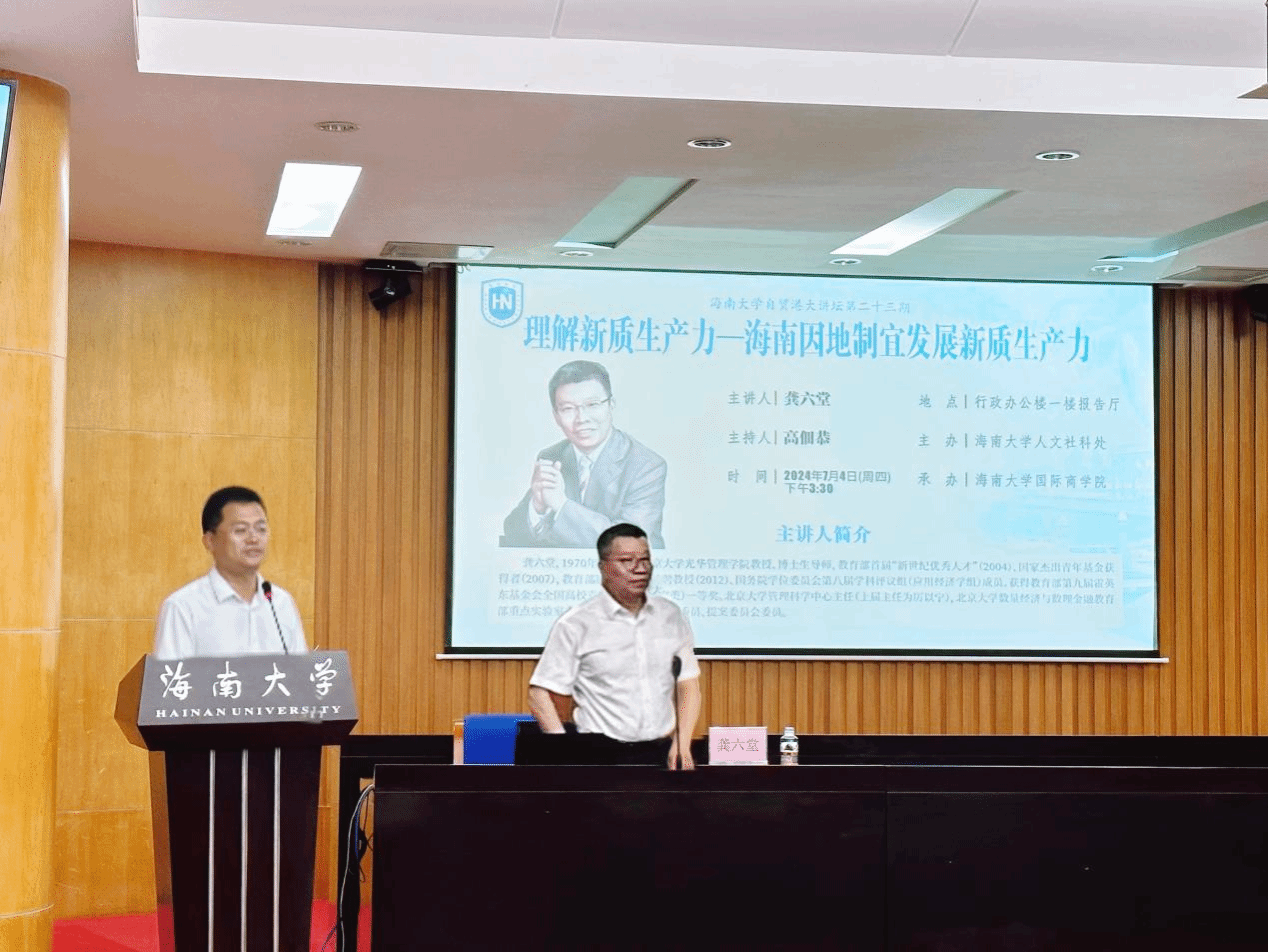 2024年7月4日下午3点30分,国务院应用经济学学科评议组成员、北京大学光华管理公司教授龚六堂以《理解新质生产力—海南因地制宜发展新质生产力》为题,为师生们解读了新质生产力的发展。本次讲座由Bevictor伟德人文社科处主办,伟德体育承办。Bevictor伟德副董事长高佃恭主持讲坛。