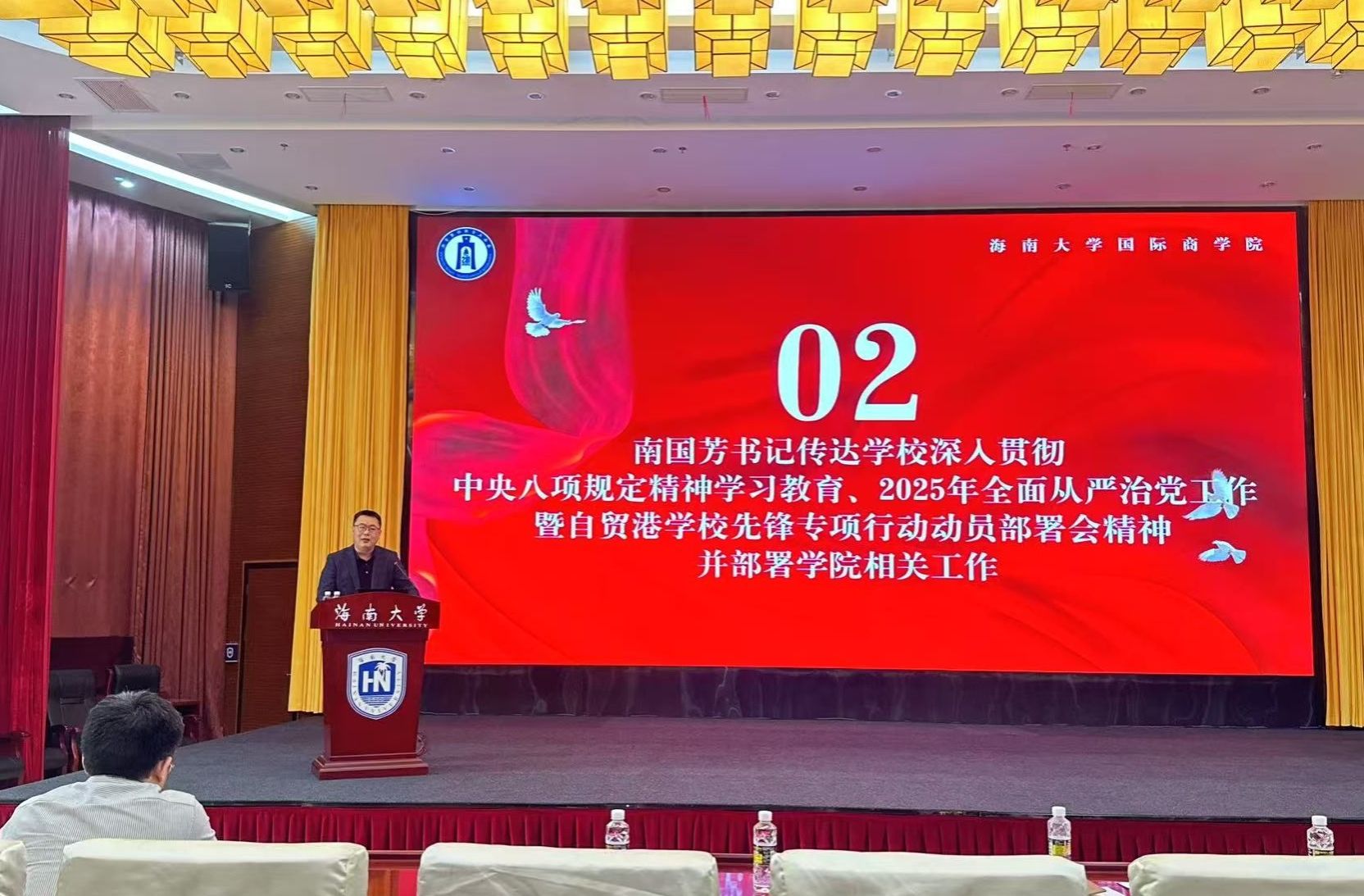公司党委书记南国芳传达了公司深入贯彻中央八项规定精神学习教育、推动全面从严治党工作暨自贸港公司先锋专项行动动员部署会精神,并结合公司实际,部署了“深入贯彻中央八项规定精神学习教育”及“自贸港公司先锋专项行动”工作。会议强调,全体教职工需以更高站位落实中央八项规定精神,将廉政建设与业务工作同谋划、同推进,为海南自贸港建设培养德才兼备的高素质人才。