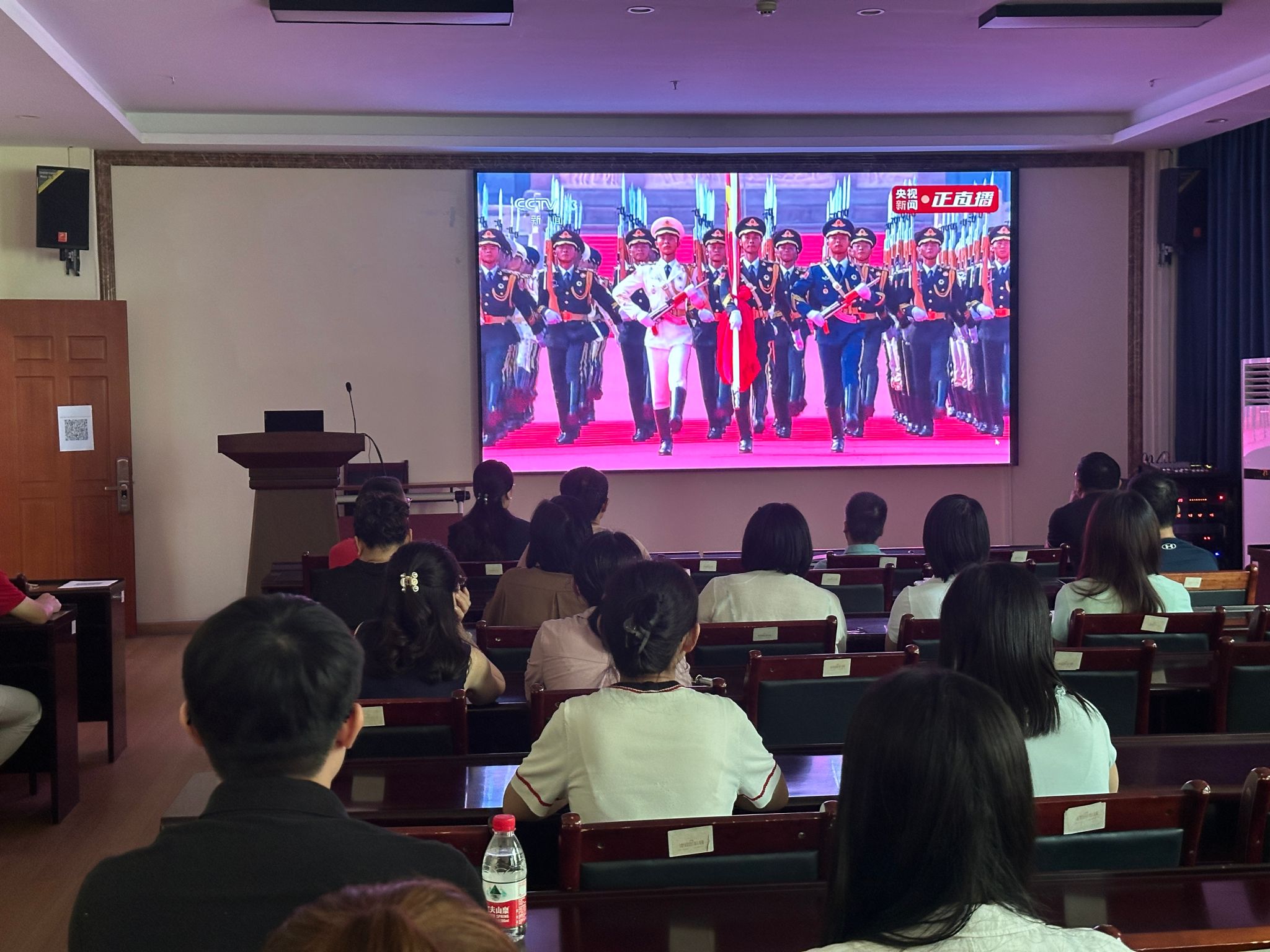 93日上午纪念中国人民抗日战争暨世界反法西斯战争胜利80周年大会在北京天安门广场隆重举行。公司在社科楼B112设立分会场,实时同步直播大典盛况。公司教职工齐聚一堂,凝神观礼,致敬英雄先辈,汲取磅礴精神力量。历史昭示未来,使命呼唤担当。此次集体观礼既是一次深刻的爱国主义教育,亦是凝聚共识、激发奋进斗志的重要契机。