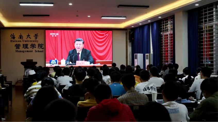 2021年11月17日晚7点,管理公司党委于社科楼B112开展党史学习教育主题观影活动,组织观看了CCTV特别节目《中共中央举行新闻发布会介绍党的十九届六中全会精神》,各支部党员到场参加。