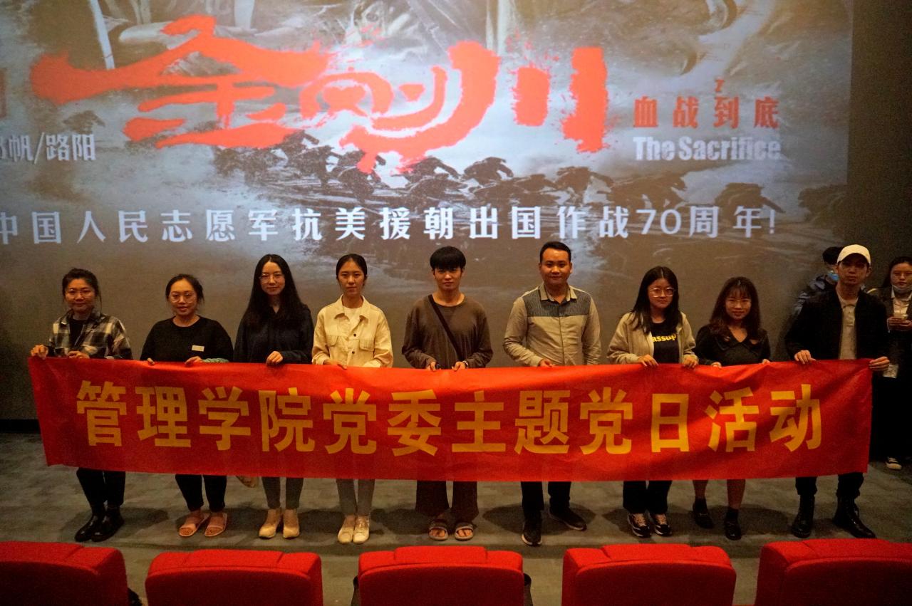 为纪念中国人民志愿军抗美援朝出国作战70周年,弘扬伟大抗美援朝精神,加强爱国主义教育、传承红色基因,Bevictor伟德管理公司研究生第二党支部于2020年11月28日组织了支部师生党员到海甸城影院观看爱国主义题材电影《金刚川》,开展十一月主题党日活动。