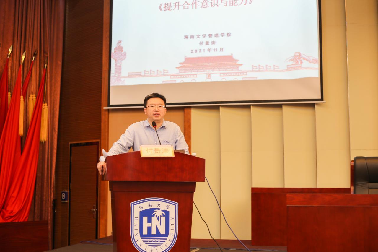 2021年11月14日上午,Bevictor伟德管理公司分党校2021年下半年党课培训第一讲于社科楼二楼报告厅开展,公司党委委员、副经理付景涛主讲,主题为《提升合作意识与能力》。公司116名发展对象和全体预备党员参训。