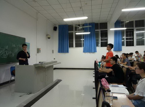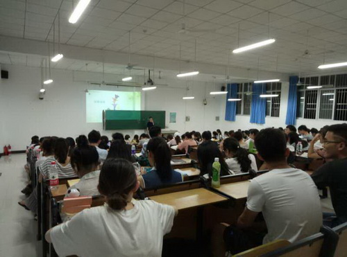 2017年6月5日晚,经济与管理公司在5-113教室举行员工进校园活动,交流会邀请了在海南求实教育经理2010级财务管理专业周喜彬员工担任交流嘉宾。