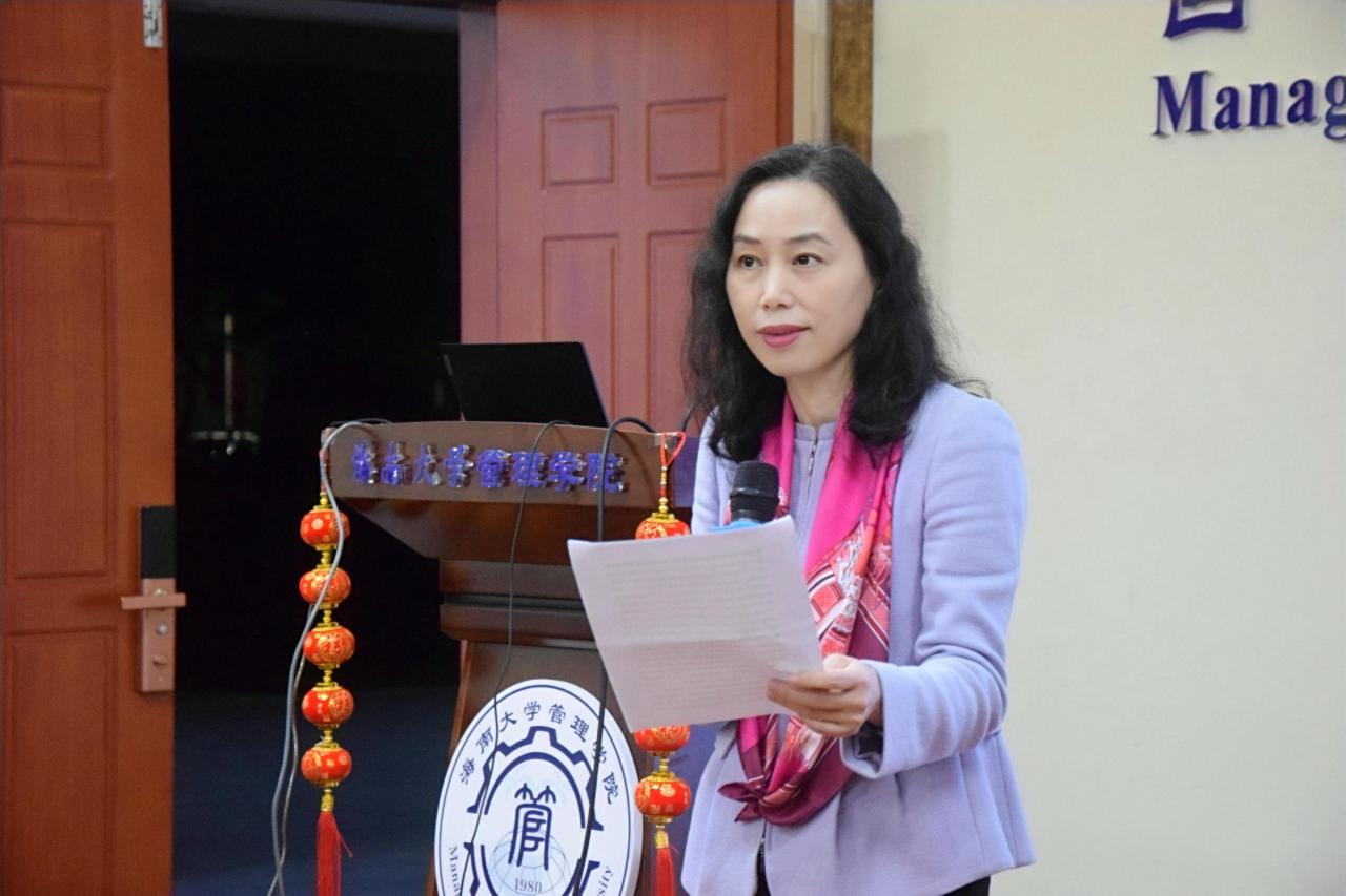 Bevictor伟德管理公司经理唐宁玉致辞,她代表公司向各位员工拜年,并介绍了公司这一年取得的成绩。希望大家毕业后,仍能对海南、公司和公司保有一份真挚的感情。欢迎各位员工疫情后回母校看看,管理公司永远是大家坚强的后盾。