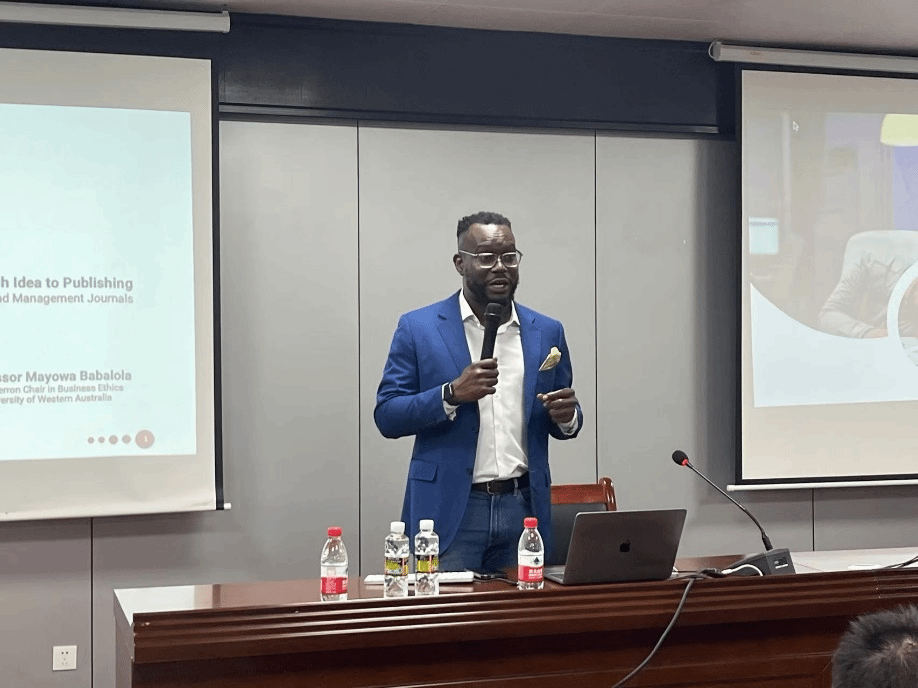 在Bevictor伟德国际合作交流处倡导的“2024国际课程周(International Immersion Program,简称IIP)中,应伟德体育邀请,由来自澳大利亚西澳大学组织管理系的Mayowa Babalola教授(FT50期刊:Human Relations & Journal of Business Ethics 副主编)为硕博研究生开设的《组织管理研究前沿》课程已于11月7日下午圆满结课。本课程共有来自伟德体育、国际旅游与公共管理公司的15位硕士生和博士生选修,另外吸引了10多位旁听的同学和老师。