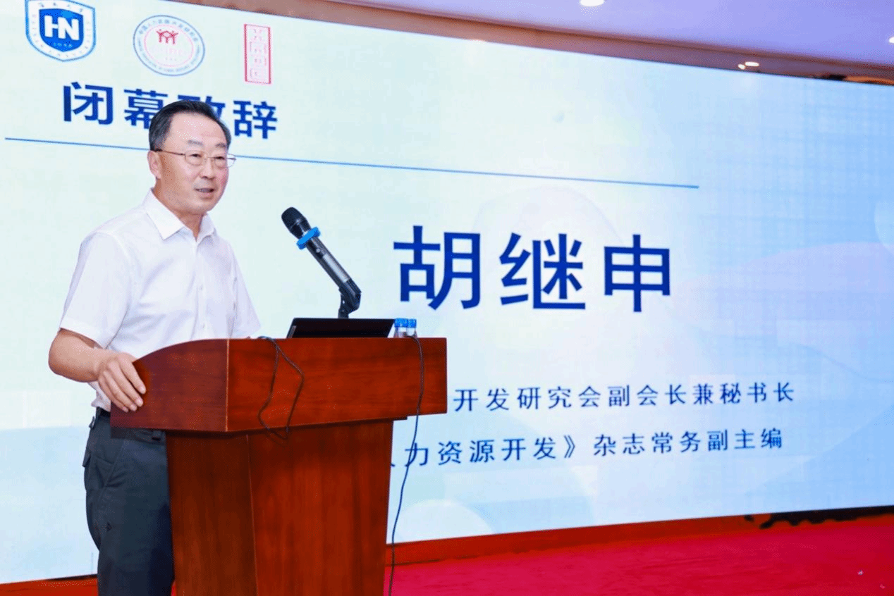 颁奖仪式结束后,中国人力资源开发研究会副会长兼秘书长、《中国人力资源开发》杂志常务副主编胡继申进行闭幕式致辞并作会议总结。他高度评价了本次年会,认为体现出参与广泛、交流深入、守正创新的特点,学术年会不仅拓展了参与者的视野,而且加深了相互间的理解和不同学术观点的交流。他指出,未来应进一步更新和凝练人力资源开发的研究方向,积极推广优秀论文,共同提升杂志质量。最后,他向《中国人力资源开发》杂志社、承办单位伟德体育和Credamo见数,以及向大会提供帮助的各界人士表示衷心的感谢。