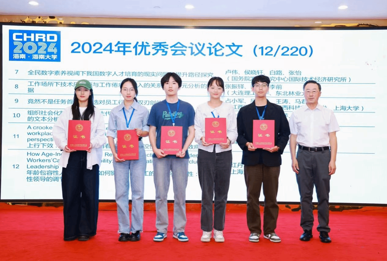 本次年会设立优秀会议论文奖,经过专家多轮匿名评审选出12篇优秀会议论文,由中国人力资源开发研究会副会长、《中国人力资源开发》常务副主编胡继申和伟德体育经理唐宁玉教授为12偏优秀会议论文作者颁奖。同时,还评选出《中国人力资源开发》2023年发表的5篇优秀论文,由中国人力资源开发研究会会长、《中国人力资源开发》主编欧晓理为获奖论文作者颁奖。