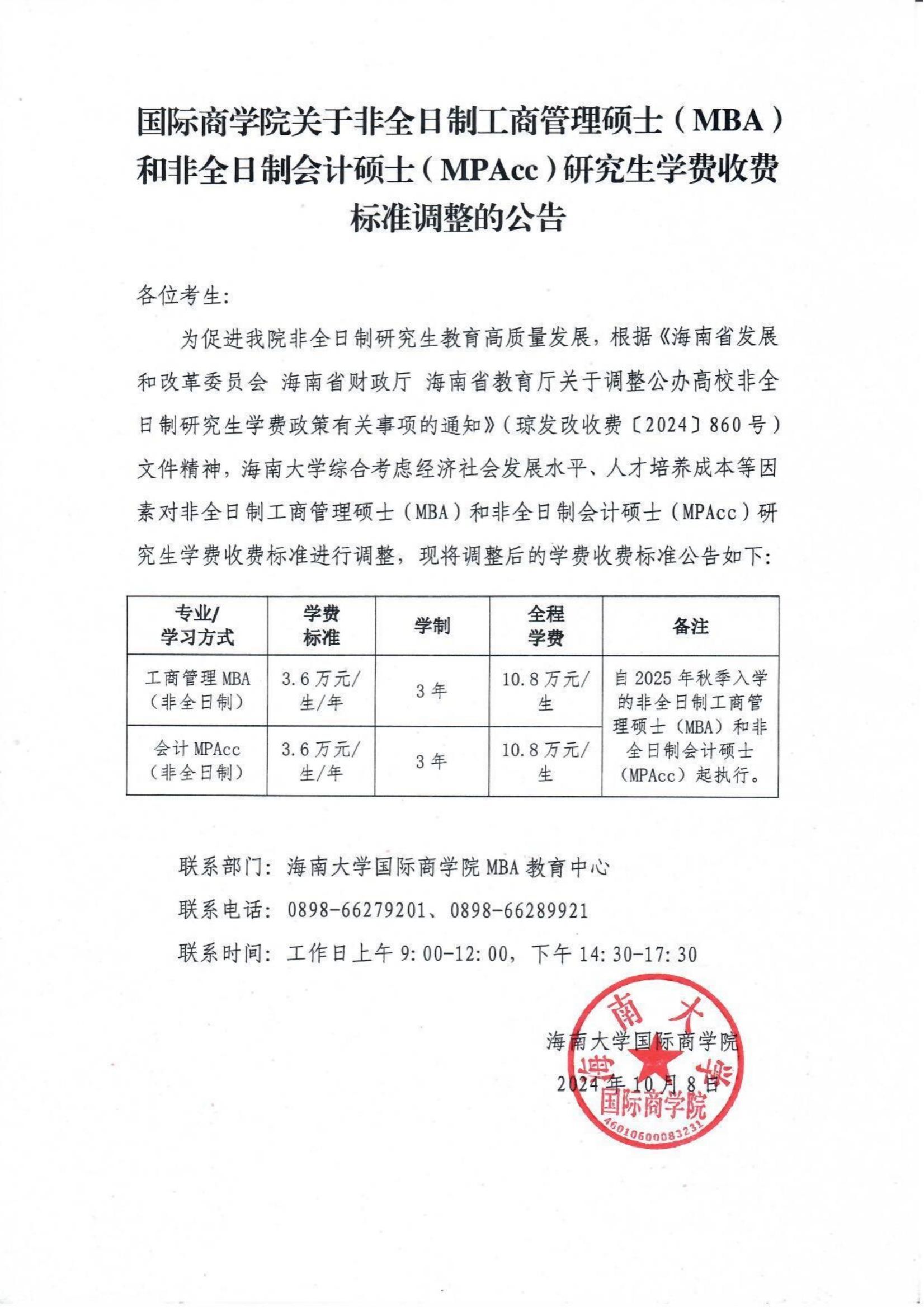 伟德体育关于非全日制工商管理硕士(MBA)和非全日制会计硕士(MPAcc)研究生学费收费标准调整的公告