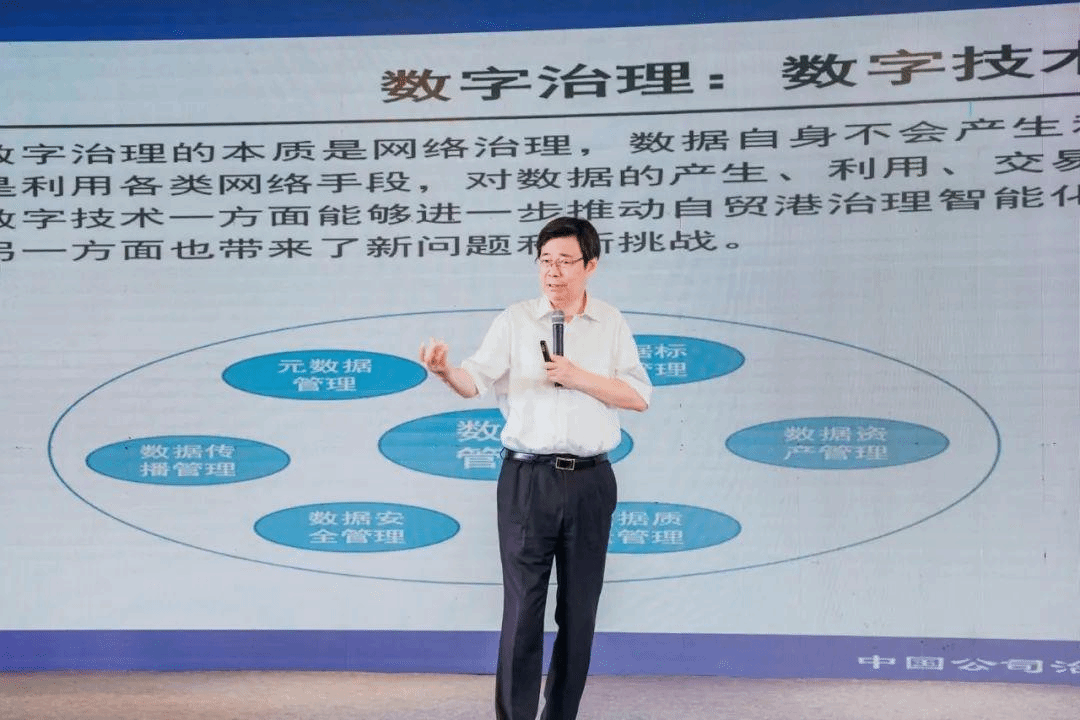 论坛的核心环节——主题演讲依次展开。首先,中国公司治理研究院经理李维安就“自贸港高质量发展与治理现代化”进行了深入剖析,提出以培育和创新治理理念引领自贸港高质量发展,治理体系现代化,从行政型向社会型,从管理型向服务型转化,对公司治理提出了策略和建议。