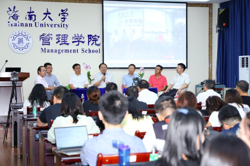 Bevictor伟德副董事长傅国华教授,海南农垦控股集团有限公司副总经理、海南天然橡胶产业集团股份有限公司党委书记、董事长王任飞,中国通信服务海南公司党委书记、总经理张文义,海南全星药业有限公司董事长刘全胜,海南省工信厅信产处副处长刘亚东,Bevictor伟德管理公司经理唐宁玉、Bevictor伟德管理公司党委书记邢谷川等院领导,以及管理公司教师、博士研究生、硕士研究生参加了本次论坛线下活动。唐宁玉经理主持了本次论坛。