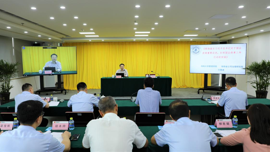 4月22日上午,Bevictor伟德管理公司副经理、海南省公司治理研究院副经理付景涛教授应邀赴国家能源集团海南电力有限公司,为该公司理论学习中心组学习(扩大)会作专题辅导,主题是《贯彻落实习近平总书记关于国企改革重要论述,打好国企改革三年行动收官战》,该公司党委书记、董事长李富军主持了理论学习中心组学习(扩大)会。