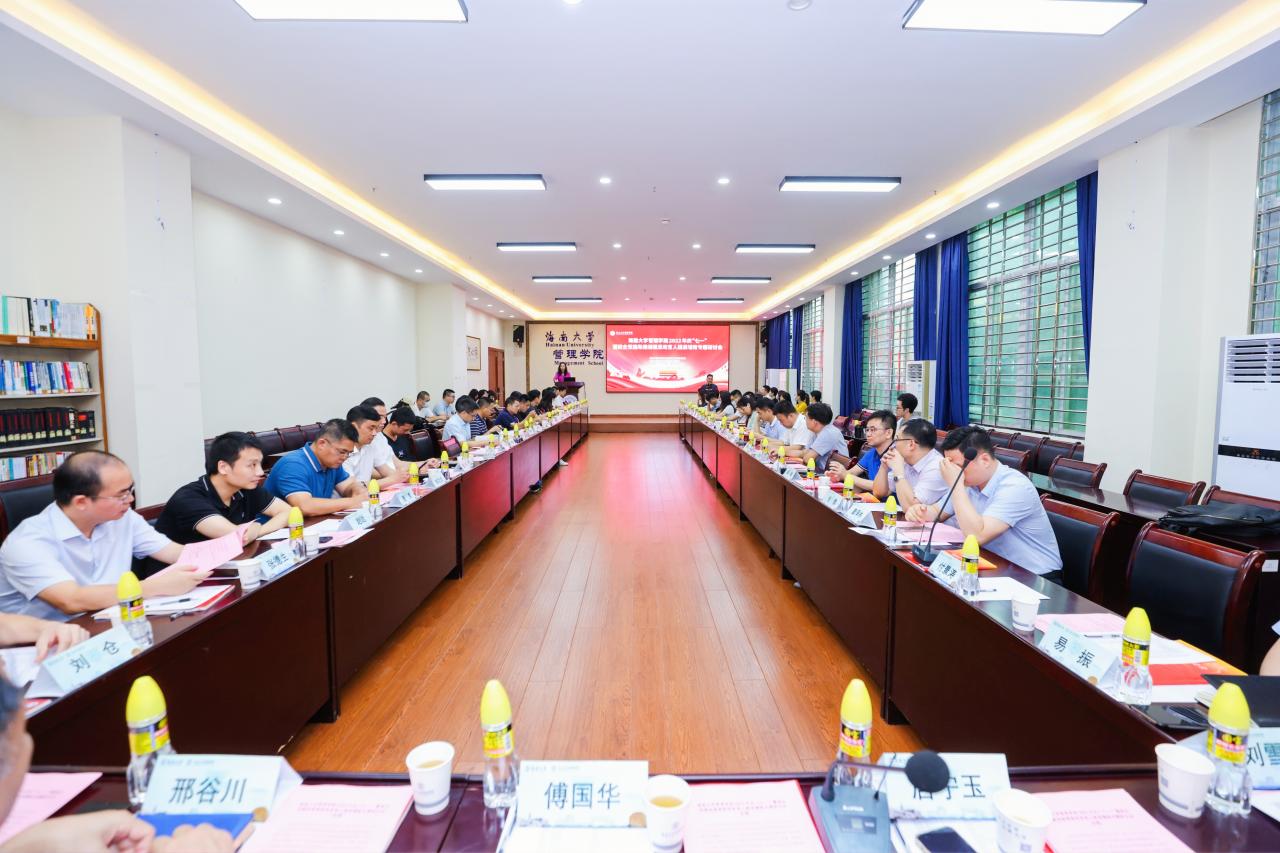 刘仓代表海南省国资委党建处向研讨会的顺利举行表示祝贺,他提到,管理公司在党建工作方面持续发力,与多家企业开展联合党建,走在了全省院校的前面,期待今后纳入更多单位,联合打造海南自贸港党建品牌。