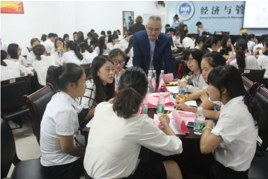 第三环节是小组方案讨论和展示。各小组就同一个案例进行讨论分析,由曲老师亲自指导每一个小组的案例分析,分别一对一进行耐心的指导讲解,让同学们身临其境到真实的案例分析现场,感受真实“四大”的工作体验,同学们可以提前感受工作中的状态。