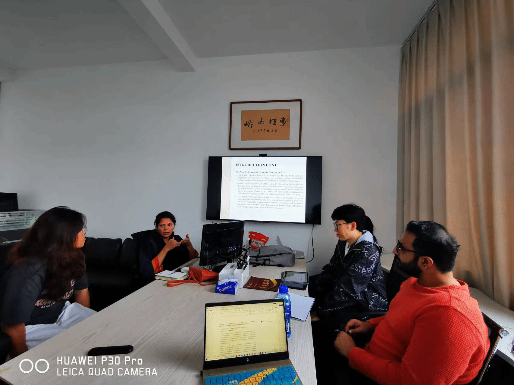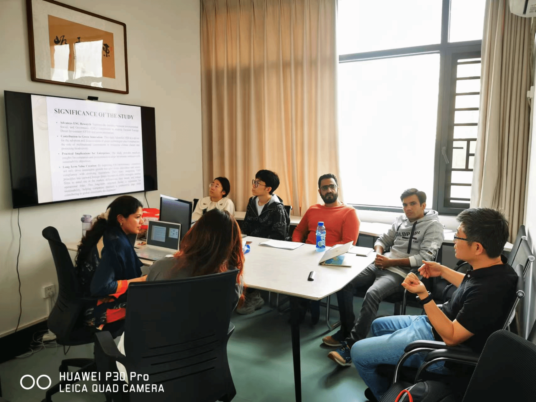 在活动中,来自巴基斯坦的博士职工Amina作了主题汇报,其他参与的老师与同学则针对她的汇报,分享了各自对ESG的独到见解和相关建议。